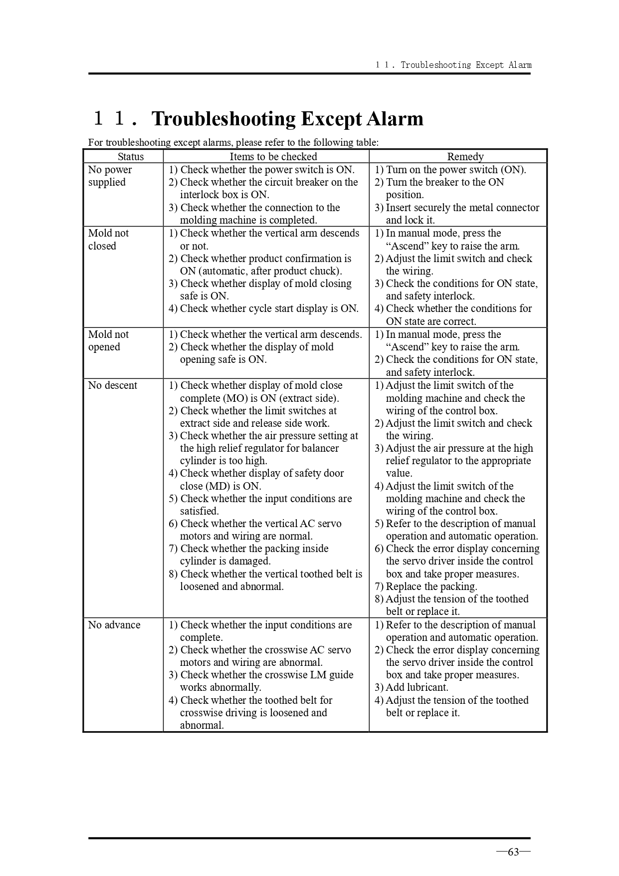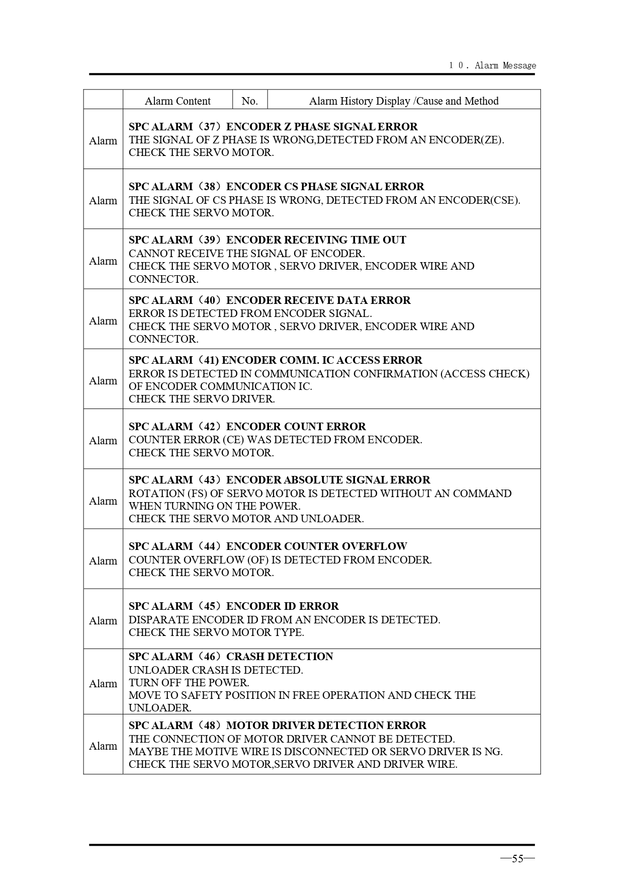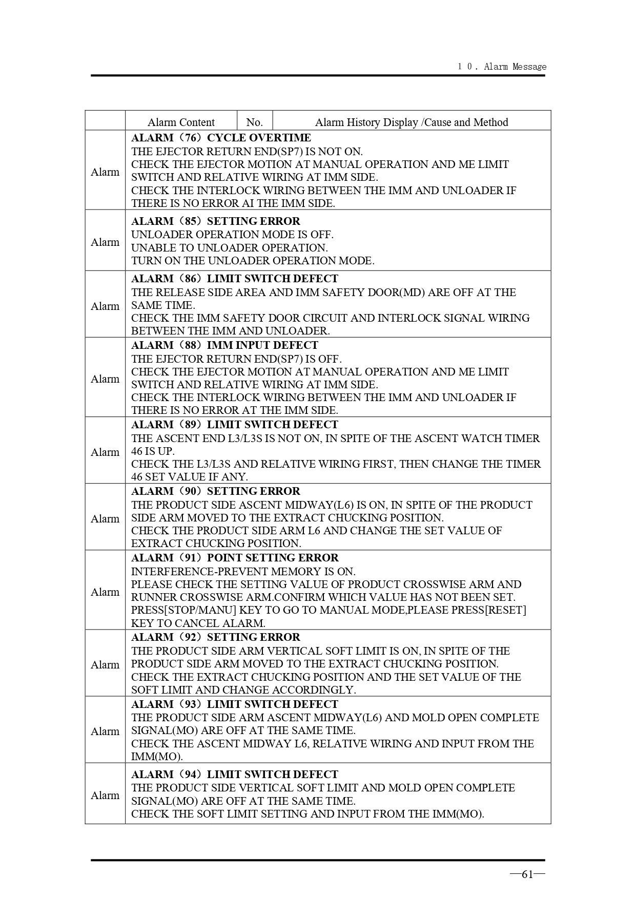 คำอธิบายทั่วไปเกี่ยวกับข้อความแจ้งเตือนเมื่อเกิดความผิดปกติ สำหรับรุ่น VK Series